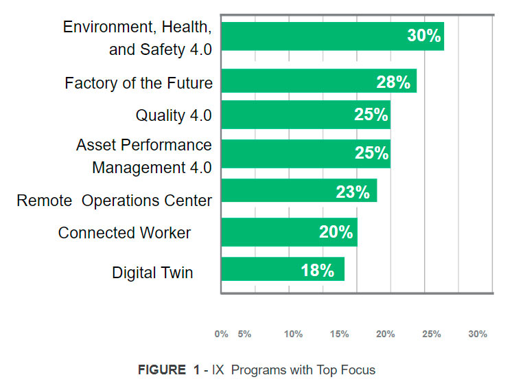 Al mismo tiempo, las empresas intensificaron sus iniciativas de Transformación Industrial (IX), la transformación digital de las operaciones industriales, para ayudar a lidiar con la crisis, destacando la gestión de SSOMA. Nuestra investigación IX Readiness más reciente (Q1 2021) muestra que entre los programas IX, las iniciativas de transformación digital de SSOMA tenían más probabilidades de recibir un mayor enfoque.
