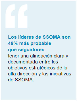 1. Alinee las iniciativas de SSOMA con la empresa. Los líderes de SSOMA comienzan con el final en mente. Alinean sistemáticamente las iniciativas de SSOMA con la estrategia corporativa y los objetivos comerciales. La alta dirección hace más que brindar patrocinio, está activamente comprometida y demuestra compromiso. Tal alineación se traduce en un desempeño operativo y financiero significativamente mejor, así como en beneficios estratégicos.