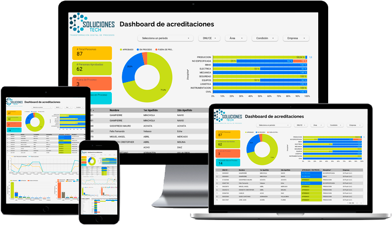 Este es el paso que más disfrutamos. Cuando los datos han sido procesados y modelados adecuadamente, nada es más satisfactorio que consultarlos en forma visual, mediante Dashboard con data en TIEMPO REAL.